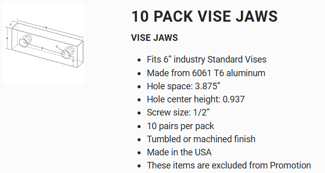 | 6″ | 2” | 1 | TUMBLED | ALUMINUM | VJ-602-10 | $ 212.10 |